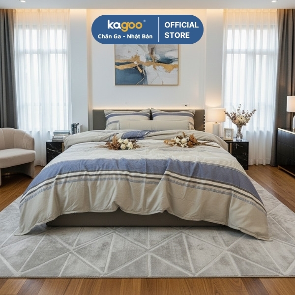 🛍️ Shopee / Lazada: Tìm “Bộ chăn ga Tencel 40S kẻ xanh ngọc Kagoo”