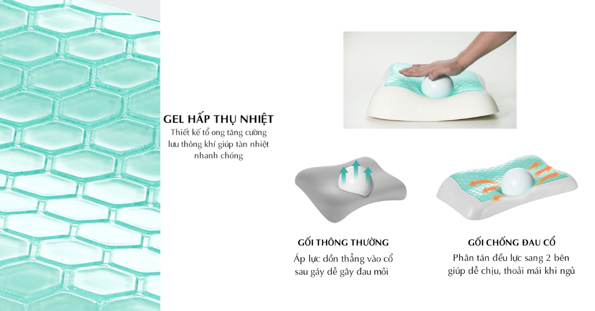 Ngoài ra, sản phẩm còn kết hợp lớp gel hấp thụ nhiệt với thiết kế tổ ong thông minh, giúp tản nhiệt nhanh chóng, mang lại cảm giác mát mẻ, thoải mái suốt đêm.