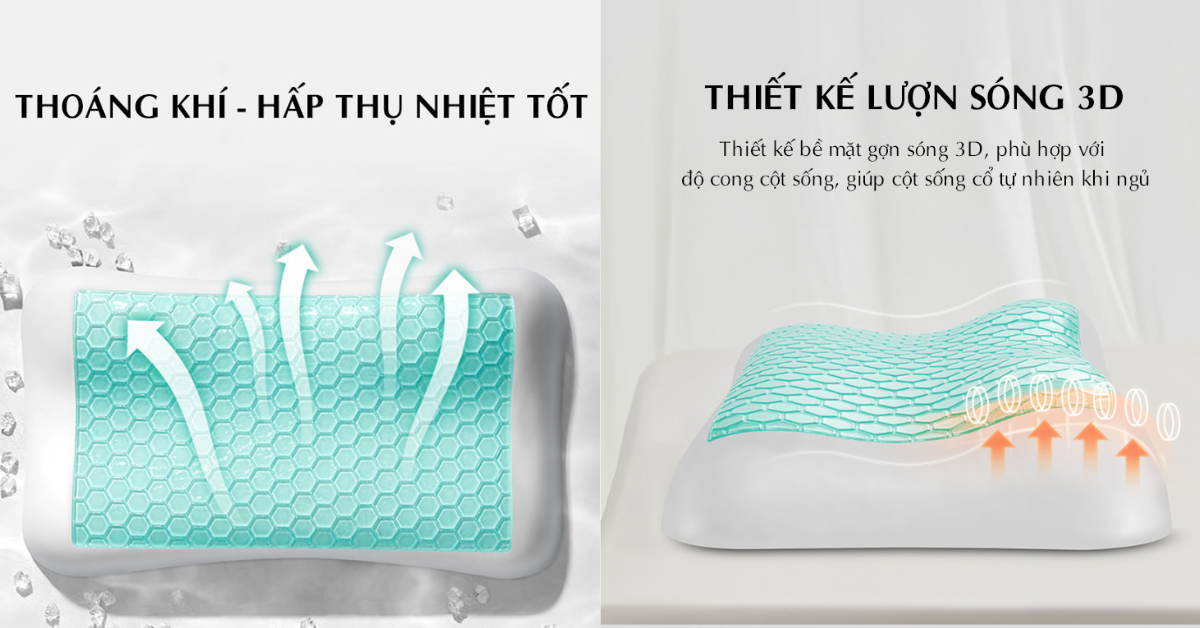 Gối được thiết kế theo dạng lượn sóng 3D, giúp: