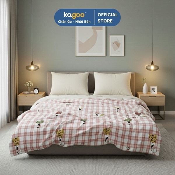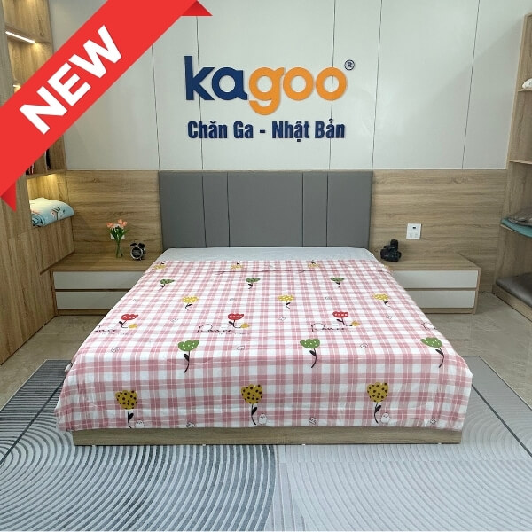 CHĂN HÈ MODAL LẠNH KAGOO HỒNG CARO HOA SẮC MÀU