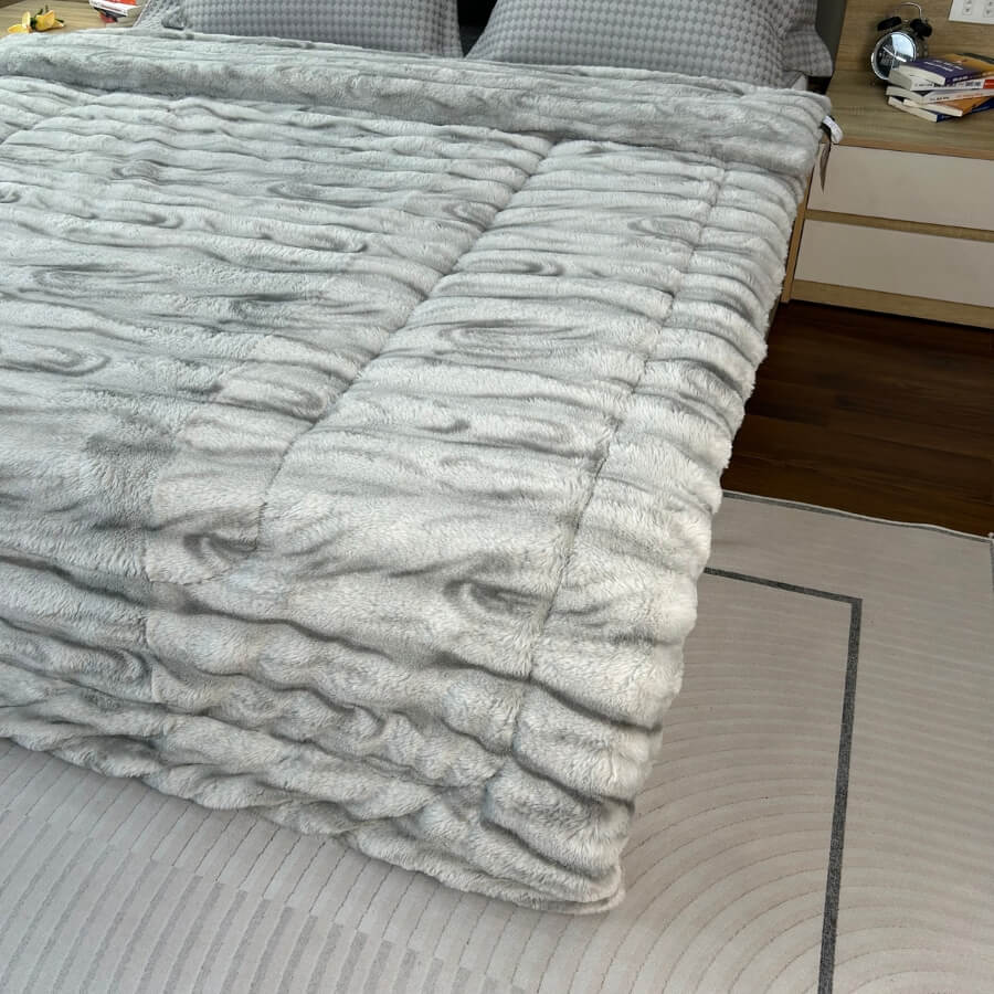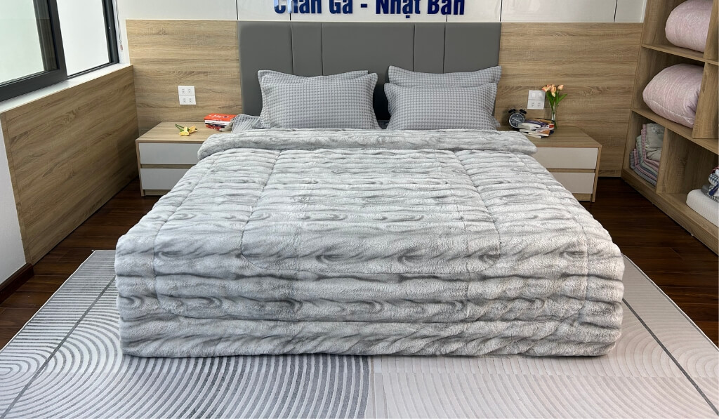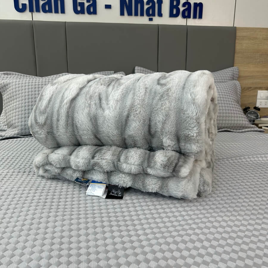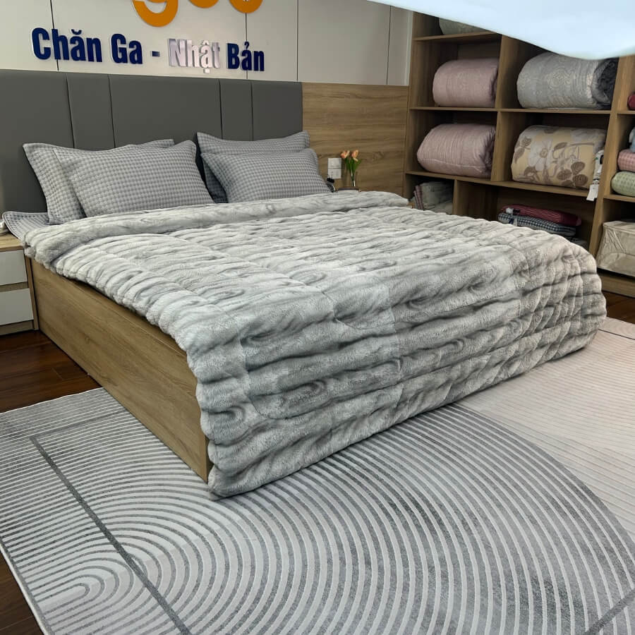 Chăn Ghi Nhạt mang vẻ đẹp thanh lịch, mềm mịn, ấm áp – phù hợp mọi gia đình.