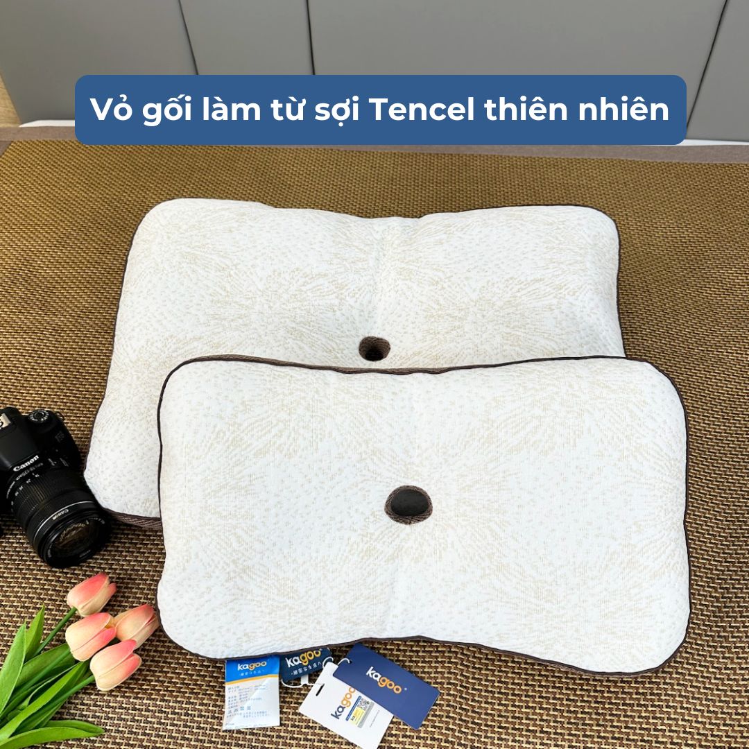 - Vỏ gối làm từ sợi Tencel thiên nhiên, mềm mượt, dịu mát và cực kỳ thoáng khí – đặc biệt dễ chịu vào mùa hè.