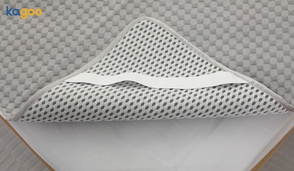 - Mặt dưới: Viscose dạng lưới – mềm mại, thông thoáng, thân thiện với làn da. Đặc biệt, phần bo chun 4 góc giúp cố định thảm chắc chắn trên giường, không bị xô lệch khi trở mình.